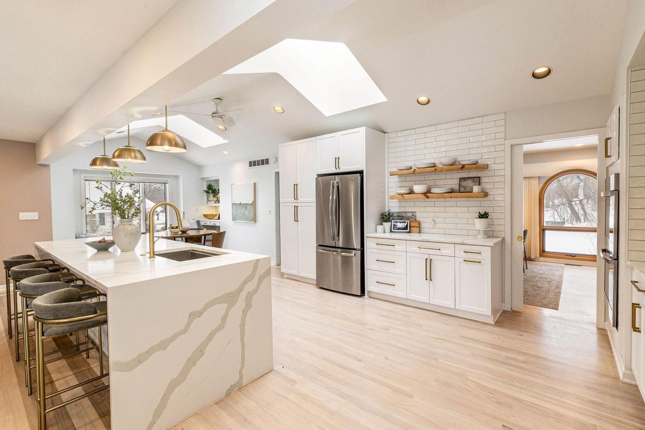 Completely remodeled and beautifully reimagined, this custom Glendale ranch blends timeless architecture with modern comfort just steps from Brown Deer Park Golf Course. A circular drive and charming courtyard entrance welcome you into a bright foyer and sun-filled living and dining space framed by a stunning wall of arched windows. The fully updated kitchen features modern finishes, abundant cabinetry, and skylights that pour in natural light, opening seamlessly to an inviting family room with fireplace. The spacious primary suite offers a walk-in closet and updated bath, while two additional bedrooms provide flexibility for guests or a home office. An incredible lower level just perfect for entertaining; this house is turnkey living in a prime Glendale location near parks, golf, and more