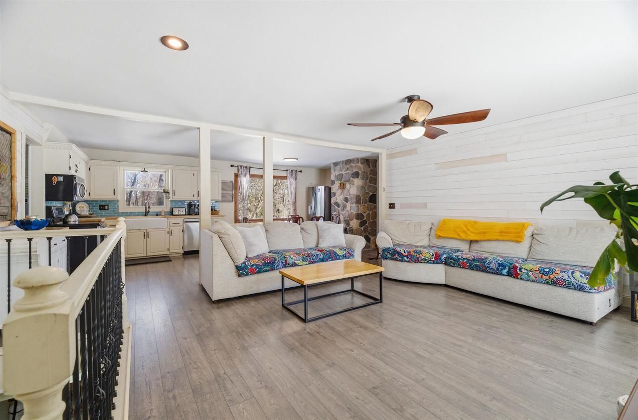 This full brick walk-out ranch has been totally refreshed w/today's style! Situated on a wooded ravine lot adjacent to Brainerd Bridge Park & bordering the Waupaca River this home feels like a retreat! Step inside to an open-concept main floor featuring a combination great room, kitchen, & dining area perfect for entertaining or just relaxing. Tucked behind the living area is an updated full bath w/dual vanity & 3 sizeable bdrms. Mudrm off the garage includes laundry & seperate 1/2 bath. The LL is finsihed w/rec rm w/FP, 4th bdrm, den & an efficiency apartment w/FR, 2nd full bath, full kitchen w/laundry & flex room for blended living. Come enjoy Waupaca's natural beauty w/access to 22 spring fed lakes, unique dining, charming shops & thriving businesses.